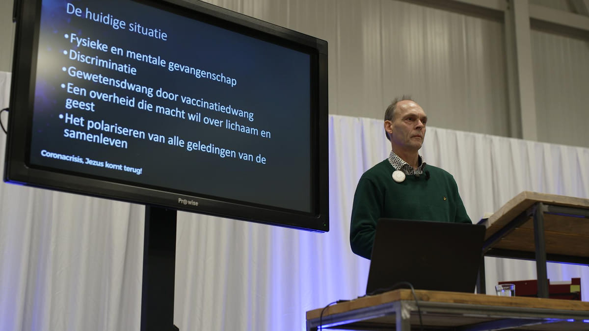 Ook evangelist Jaap Dieleman komt aan het woord: 'Onze regering bestaat uit misdadigers. Zij zijn geen dienaren van het volk. Ze zijn bezig een oorlog van God over zich te halen… de leugen regeert. We worden volgepompt met angst.' Tijdens de bijeenkomsten toetst Rennie Schoorstra de actualiteit aan de bijbel. Volgens hem is de coronacrisis een duidelijk signaal dat Jezus terug zal keren op aarde. Daarbij schuwt hij niet allerlei complottheorieën aan te halen die deze eindtijd bevestigen. Zo valt regelmatig in negatieve zin de naam Klaas Schwab van het World Economic Forum en zijn ook Bill Gates en George Soros kwaadwillende mensen. Namen die ook regelmatig opduiken in complottheorieën zoals die van QAnon. 'The Great Reset van Schwab is een zondig bouwwerk, een hoogmoedig machtsdenken,' aldus Schoorstra.
