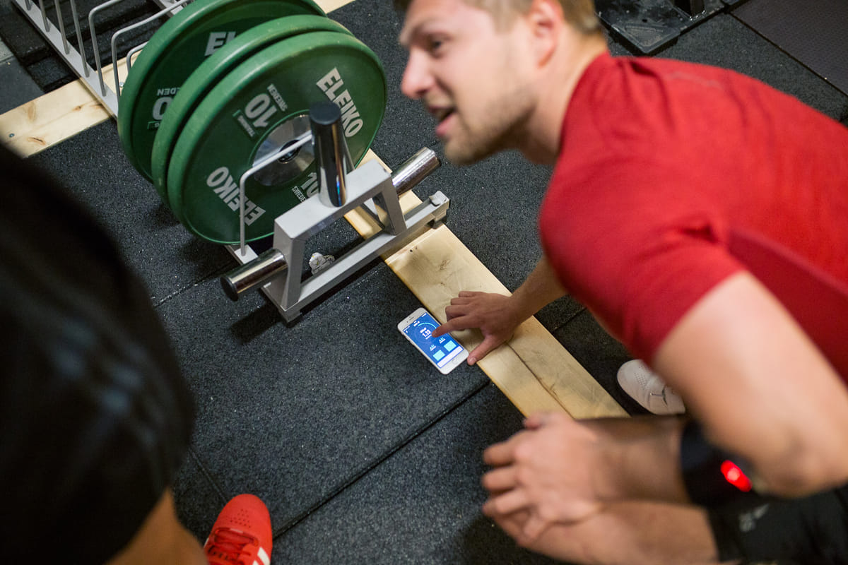 Als Harrie Lavreysen met gemak tientallen kilo’s de lucht in zwengelt, duikt iedereen naar Harries app om te kijken wat de cijfers zeggen. Er klinkt gebulder in het krachthonk, waarna ze verder gaan met het afwerken van het trainingsschema.