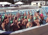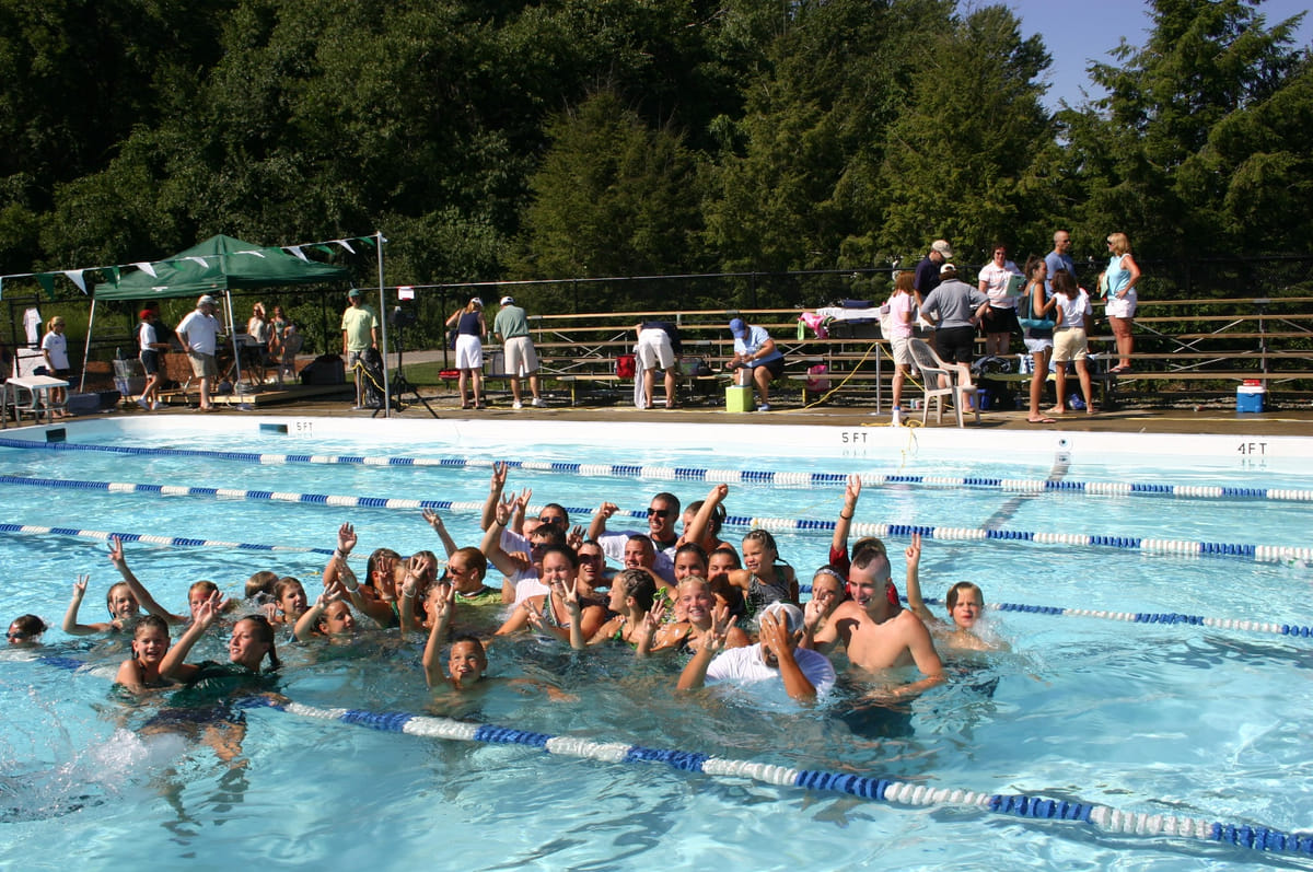 In Amerika wordt zwemmen gezien als een teamsport. Voor een wedstrijd of met je club heb je vaak een yell, zoals hier bij Nyls' Thomson Country Club in North-Reading, Massachusetts.