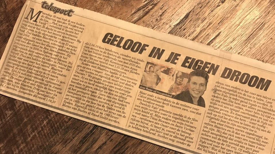 Dat Nyls veel talent heeft is allang duidelijk. Maar op zijn elfde zwemt hij plots een oud jeugdrecord van Pieter van den Hoogenband en Maarten van der Weijden aan flarden: 1.03.23 seconden tijdens de Gelderse kampioenschappen. Pieter schrijft er een column over en geeft zijn potentiële opvolger advies...