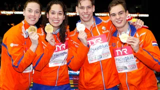 Bekijk de 4x100 met Nyls, Ranomi, Femke en Kyle