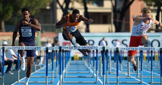 Op je twintigste word je in de atletiekwereld senior. De kogels worden dan zwaarder, de hordes hoger en de concurrentie is natuurlijk beter. Ter indicatie: Rafael sprong bij de junioren A over hordes van 99,1 centimeter, bij de senioren zijn de hordes zeven centimeter hoger: 1.067 meter. Da's ongeveer zo hoog als een kliko.