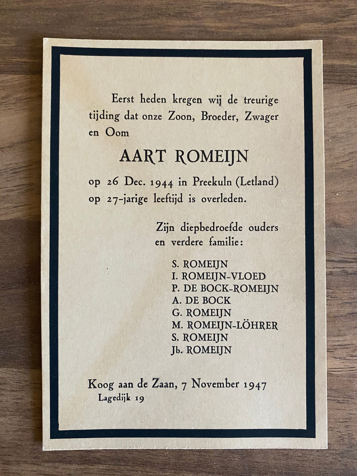 Op de Duitse militaire begraafplaats in het Ysselsteyn (Limburg) horen Aafke en Anneke hoe Duitsland en andere Europese landen omgingen met Duitse oorlogsslachtoffers. Misschien kan iemand daar meer vertellen over de laatste rustplaats van Aart Romeijn.