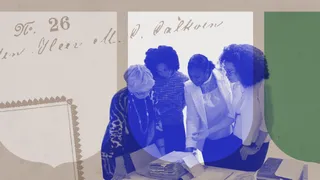 Maartje en Peggy doen voordat ze het Nationaal Archief binnengaan een rondleiding door Den Haag met erfgoeddeskundige Valika Smeulders. Smeulders laat hen de restanten van het koloniale verleden in de hofstad laat zien.