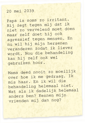 In 2039 worden mensen die in de fout zijn gegaan niet meer gestraft, maar steeds vaker moreel beter gemaakt via technologie en drugs.