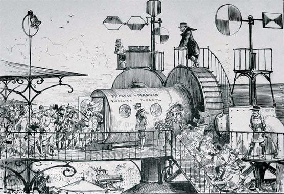 Hoewel Jules Verne bleef volhouden dat hij vooral schreef over reizen (Twintigduizend mijlen onder de zee, Reis naar het middelpunt der aarde, Reis om de wereld in tachtig dagen) en daar noodgedwongen bepaalde vervoersmiddelen voor moest bedenken, heeft hij achteraf veel bekendheid gekregen door zijn ‘voorspellende gaven’. Jules Verne schreef in 1863 een verhaal over een dystopisch technocratisch Parijs in het decennium van 1960 (Paris au XXième siècle), maar zijn uitgever wilde het niet publiceren omdat het te ongeloofwaardig was. Hoe mis bleek hij het te hebben: Verne ‘voorspelde’ onder andere de metro, magnetische treinen, de fax, elektronische muziek en de elektrische stoel.