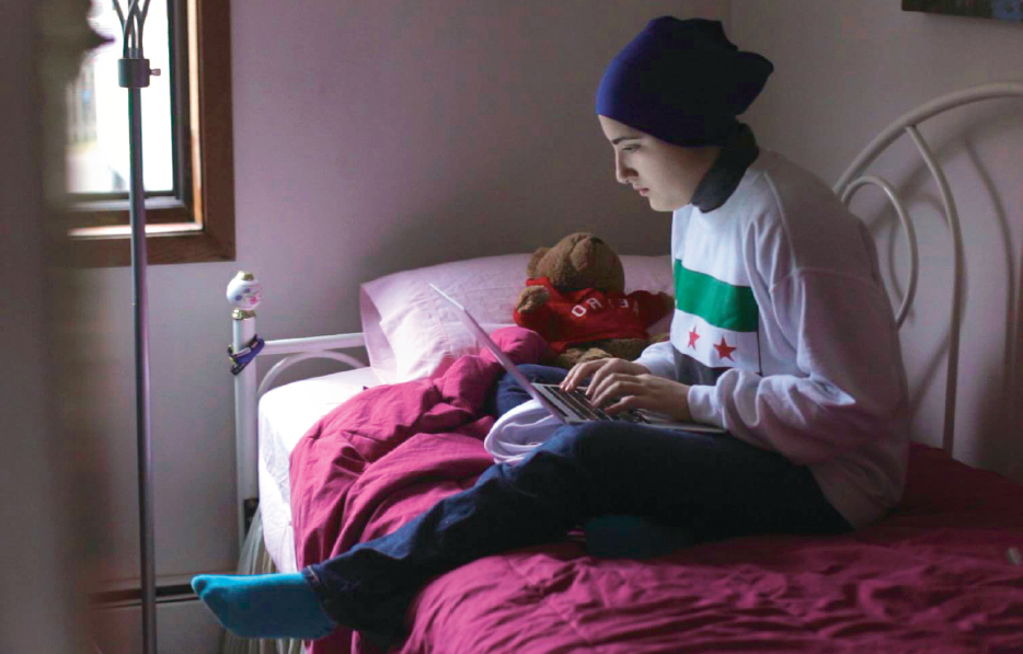 Ala’a woont relatief veilig bij haar familie – haar vader vluchtte voor het politieke klimaat uit Syrië toen ze een jong meisje was. Maar ook in #chicagoGirl zijn de bedreigin- gen van de oorlog voelbaar. Strijders die goede vrienden zijn geworden, sturen beelden van de bloedige strijd rechtstreeks door, met gevaar voor eigen leven. ‘Ik wilde met deze film laten zien wat diensten als Facebook, Twitter en Skype teweeg kunnen brengen,’ zegt de regisseur. ‘Maar hoewel technologie ervoor zorgt dat deze nieuwe manieren van actievoeren kunnen plaatsvinden, zijn het nog altijd de mensen die het verschil maken.’