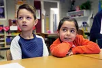 Peter: ‘Er komen regelmatig nieuwe kinderen in die klas en dat zijn interessante momenten om te filmen en te zien hoe de interactie is. En ook al verstonden we hen niet, we hadden snel door met wie we het verhaal wilden vertellen: Haya, Leanne en Jorj uit Syrië, en Branche uit Macedonië.’