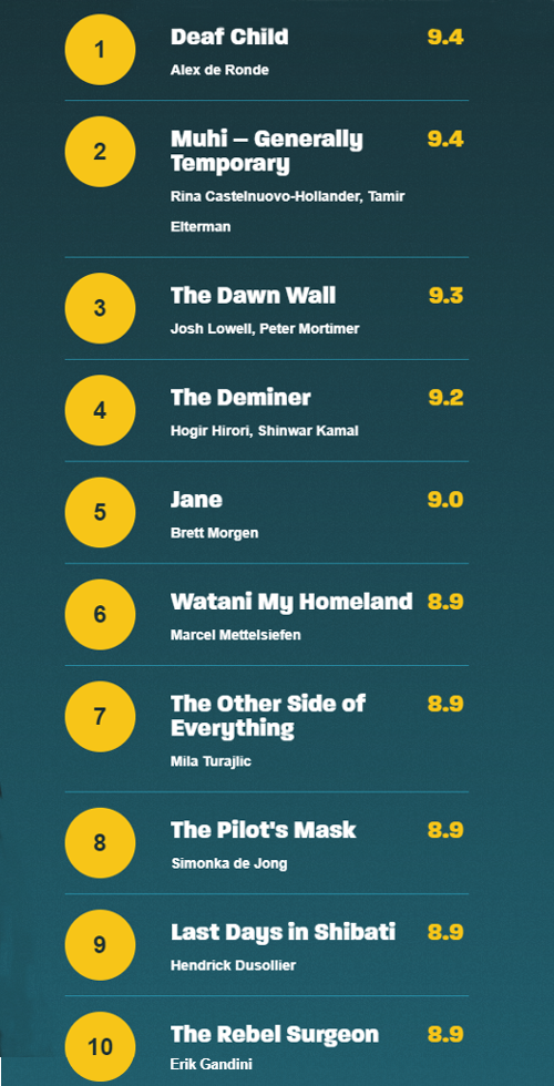 Tijdens het festival wordt de tussenstand van de publieksprijs bekend gemaakt in de dagelijkse top 10 op de IDFA website.