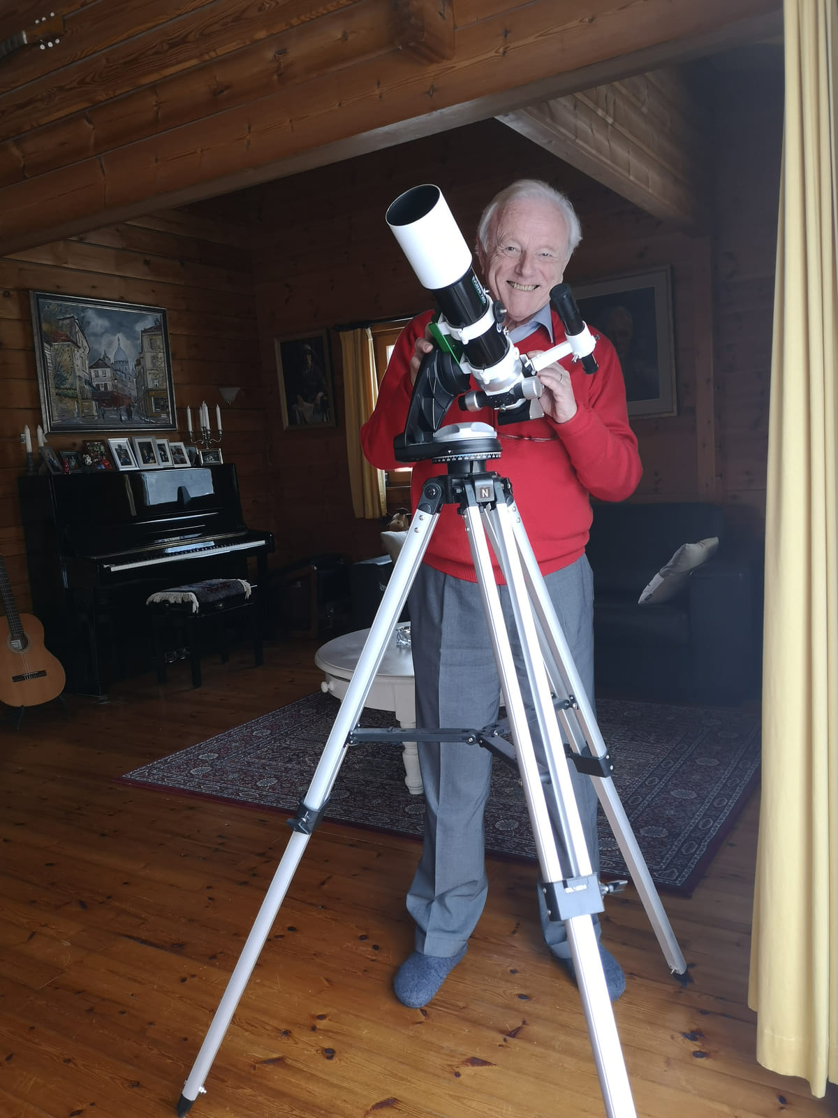 ‘Een kijkertje. Ik had een grote, maar die heb ik verkocht. Deze heb ik pas kort en is meer voor de kleinkinderen, zodat ze af en toe naar de maan of Saturnus kunnen kijken.