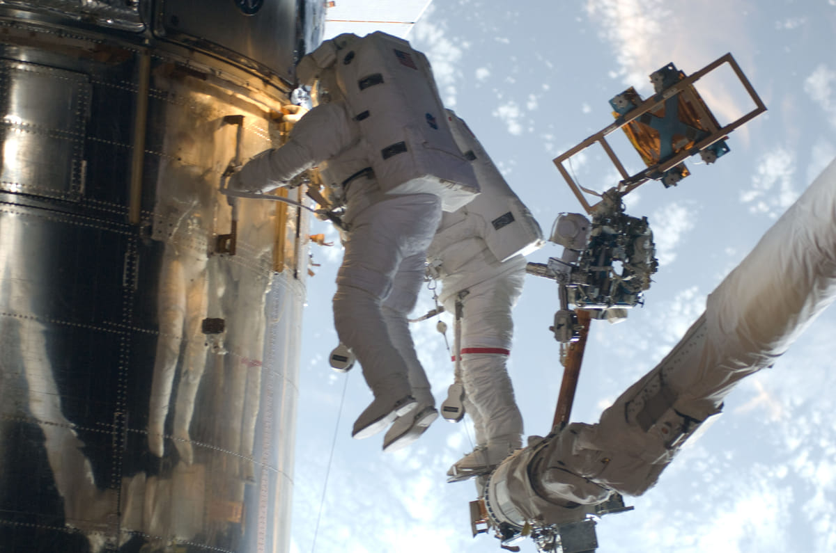 Maar het samenspel tussen bemande en onbemande ruimtevaart is ingewikkeld. De vier peperdure spaceshuttles, primair bedoeld om bemanningen en voorraden naar het nog veel duurdere ISS te brengen, brachten behalve veel satellieten ook de fameuze ruimtetelescoop Hubble in een baan om de aarde. En toen de Hubble door een domme fout bij de bouw 'bijziend' bleek, kon die door astronauten vanuit een spaceshuttle in de ruimte gerepareerd worden.