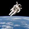 Hier zie je astronaut Bruce McCandless tijdens de eerste ruimtewandeling zonder verbinding met een ruimteschip, op 7 februari 1984. Hij zweefde dus vrij rond. Behoorlijk gevaarlijk, want als er iets mis was gegaan met zijn jetpack-achtige voortstuwingsapparaat, zou het lastig zijn geweest om hem weer terug in space shuttle Challenger te krijgen. Maar het ging dus goed.