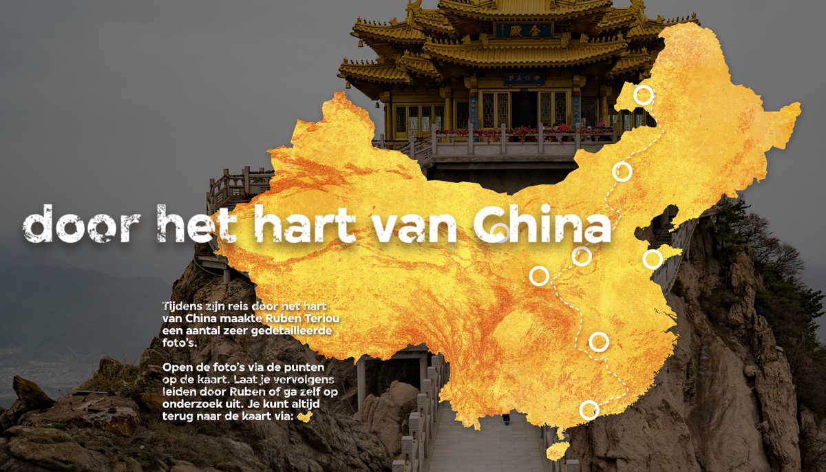 Ook online neemt Ruben Terlou je mee Door het hart van China: in een reeks interactieve, zeer gedetailleerde foto's komen extra verhalen aan bod die niet of maar gedeeltelijk in de televisieserie voorbij komen. Bekijk nu alle foto's via de link hiernaast; lees hier meer over deze site.