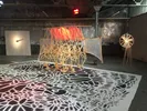Of je van het heftig flikkerende Citadels: lightscape van Matthijs Munnik beter wordt, hangt af van hoeveel aanleg je hebt voor epilepsie, maar van een dutje in de met matrassen en kussens ingerichte tent ertegenover wordt niemand slechter. Die is eveneens heftig, met de verschillende schreeuwerige prints, maar het model dat half in de tent hangt, legt uit dat het hier gaat om prints van meditatieve symbolen: Healing Prints. Ze wijst op haar lange jurk, die bij het ontwerp hoort en ook dergelijke symbolen bevat. Misschien leuk voor de outfits van verplegend personeel in ziekenhuizen.