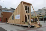Met hun driehoekige, volledig demontabele Solar Cabin trekken Bram Zondag en Arjan de Nooijer tijdens het opbouwen op het Stadhuisplein al veel bekijks. Een strak ontwerp, maar toch een knus huisje. Met een groot schuin dak vol zonnecellen – en dat is niet zomaar omdat het hip is om overal zonnecellen op te gooien. Bram Zondag legt uit: ‘Over vluchtelingen hoor je nogal eens: niet in mijn achtertuin. Met de Solar Cabin hebben we een huisje gemaakt dat 1,5 à 2 keer zoveel energie oplevert als het verbruikt. Zodat het de omgeving concreet iets oplevert en mensen zeggen: graag in mijn achtertuin!’