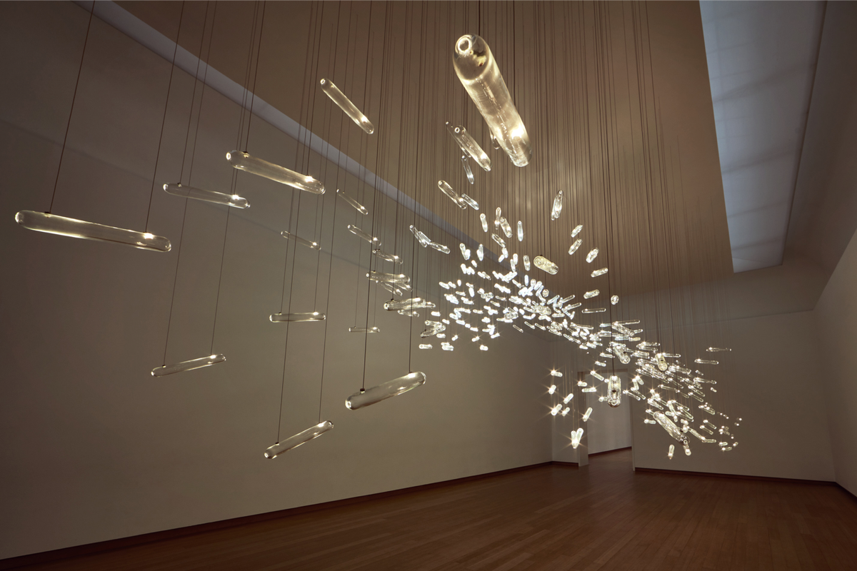Dat is een retorische vraag, maar al na een paar klikken op studiodrift.com licht het antwoord op: kwaliteit. Op de site wordt het werk met veel fraaie foto's en filmpjes weergegeven. De kunst- en designleek zou met name Fragile Future kunnen herkennen. Dit lichtspinsel haalde in juli van dit jaar de media toen het gerenoveerde Paleis Huis ten Bosch aan het publiek werd gepresenteerd. Daar zweeft het in een zaal. Ceci n'est pas une pipe. Dit is geen lamp.