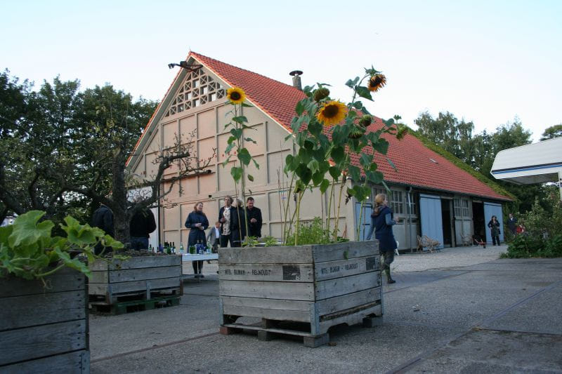De melk wordt in een kannetje gegoten en we stappen weer naar buiten, waar kippen, hanen en ganzen in loepzuiver namiddaglicht in het gras scharrelen. ‘Hebben we alles?’ De blauwe schort gaat af en aan tafel in de schuur zal het veelal gaan over ‘een positie innemen’ en ‘kritisch zijn zonder te oordelen’. De grote schuifdeuren blijven open en als er een roofvogel overvliegt, stelt hij terloops vast: ‘Dus daarom zijn de kippen onrustig.’