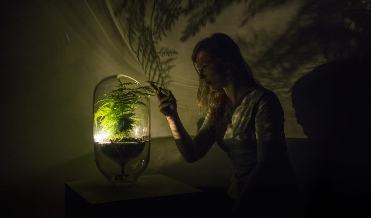 Als er iemand graag met haar voeten in de modder staat, is het Ermi van Oers (1991). Ze studeerde cum laude af aan de Willem de Kooning Academie en is gefascineerd door biodesign. Zo bouwde ze tijdens haar studie een ‘modderbatterij’ en experimenteerde in haar eigen keuken met het opwekken van stroom uit urine. Uiteindelijk studeerde ze af met Living Light, een drijvende lamp die zijn energie haalt uit vervuild water uit de Maas. Het project kreeg een vervolg in samenwerking Plant-e, een spin-offbedrijf van de Universiteit van Wageningen. Van Oers maakte gebruik van ‘microbial fuel cells’ om een plantaardige lamp te ontwikkelen. Die geeft alleen licht als je er goed voor zorgt: als je hem aanraakt of water geeft.