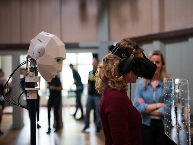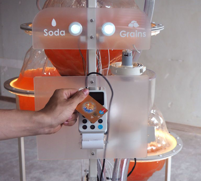 De relatie tussen mens en technologie onderzoeken en een positieve kant op sturen, dat is volgens Arvid Jense (1988) het doel van zijn werk. Hij bouwt installaties en ontwerpt nieuwe muziekinstrumenten, niet alleen voor mensen, maar ook voor varkens. Jense werkt veel samen met de Franse kunstenaar Marie Caye. Samen ontwikkelden ze sam, oftewel Symbiotic Anonymous Machine. sam is een robot die frisdrank maakt, maar ook alle functies daaromheen uitvoert, zoals management, prijsvoering en service. Daarmee is hij een zelfstandige economische entiteit. Dat roept weer nieuwe vragen op over de rechten en plichten van mens en machine, vinden de ontwerpers.