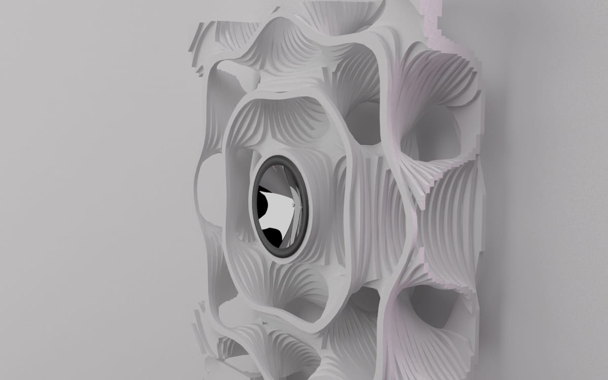 Soundshapes by SoundShapeLab. Geluidsgolven omzetten naar een visueel prachtig speakerontwerp, die op hun beurt weer geluidsgolven produceren. Een audiovisuele cirkel?