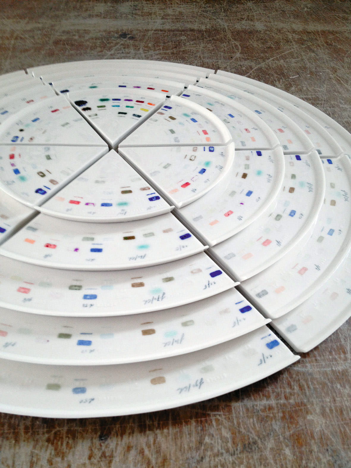 ‘We doen nauwkeurig onderzoek naar een materiaal voordat er een product ontstaat. Zo hebben we tijdens het project Drawn from Clay onderzoek gedaan naar verschillende soorten klei in Nederland. De verschillende kleuren en structuren van het eindproduct, kleiservies, laten de identiteit van de regio waar de klei vandaan komt zien.’
