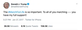 Maar wat op dit moment de gemoederen nog meer bezighoudt in de VS, is de pro-life versus pro-choice-discussie. Nog nooit heeft een president zich zo duidelijk als anti-abortus geprofileerd als Trump. Onder andere door als eerste president te spreken op het pro-life-evenement ‘March for Life.’