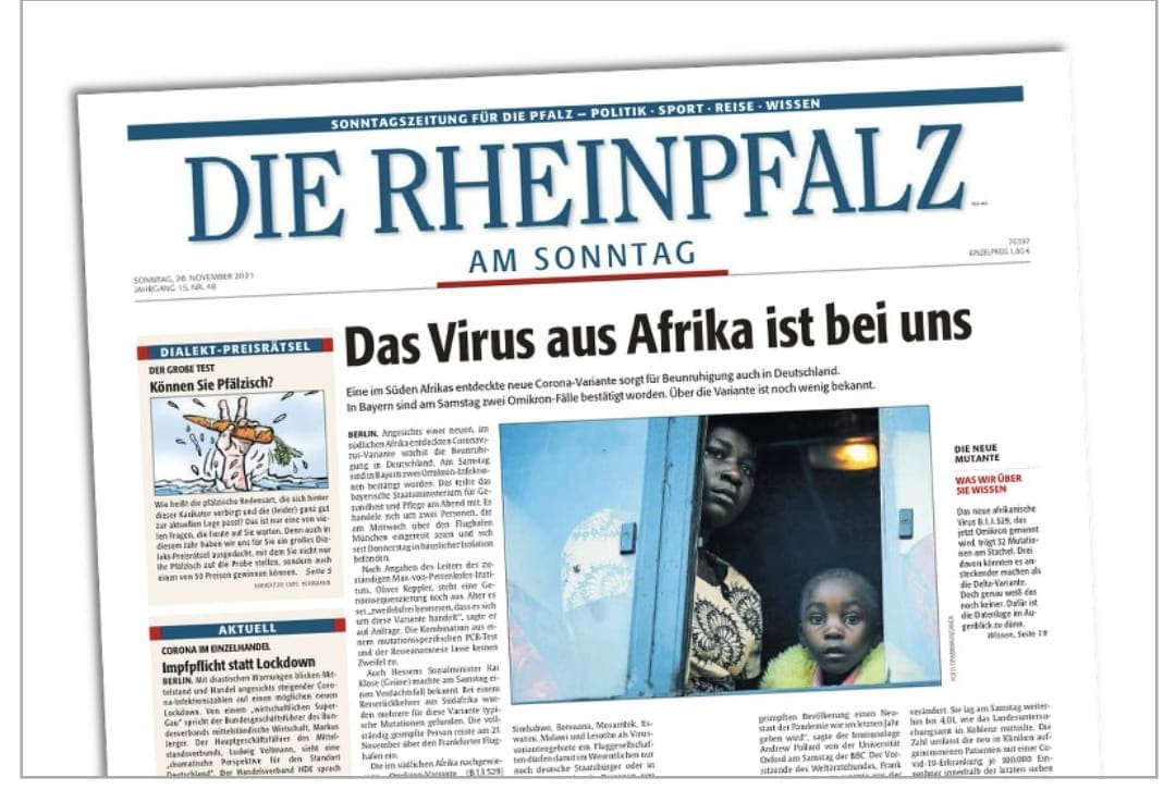 De Duitse krant Rheinpfalz Am Sonntag kopte: ‘Het Afrikaanse virus is onder ons’. De Spaanse krant La Tribuna drukte een cartoon af met een bootje vol zwarte omikronvirussen met rode lippen. Het bootje had een Zuid-Afrikaanse vlag.