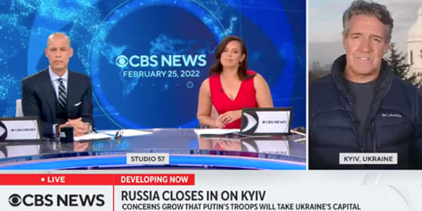 ‘Met alle respect, maar deze plaats is niet zoals Irak of Afghanistan die al decennia in oorlog zijn. Dit is een relatief beschaafde, relatief Europese – ik moet hier mijn woorden zorgvuldig kiezen – stad,’ zei de correspondent van CBS News in Kiev, Charlie d’Agata.
