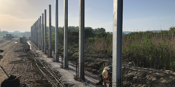 De bouwvakkers staan er elke dag te soppen met hun kistjes in het rivierwater. Die muur alleen al kost 63 miljoen euro. En er wordt ook nog miljoenen besteed aan drones en zelfs een geluidskanon, dat migranten en vluchtelingen moet wegjagen.