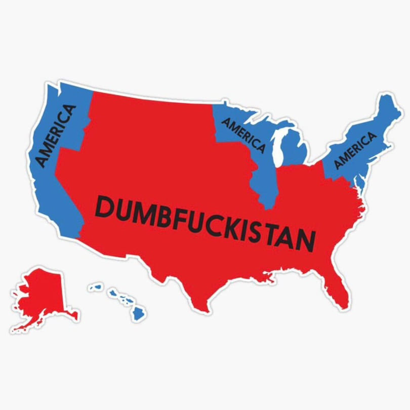 Toen we anderhalve week geleden wakker werden met het nieuws van een Trump-overwinning, ging er op de socials een kaartje rond van de Verenigde Staten waar over de hele breedte van de pro-Trumpstaten stond geschreven: Dumbfuckistan.