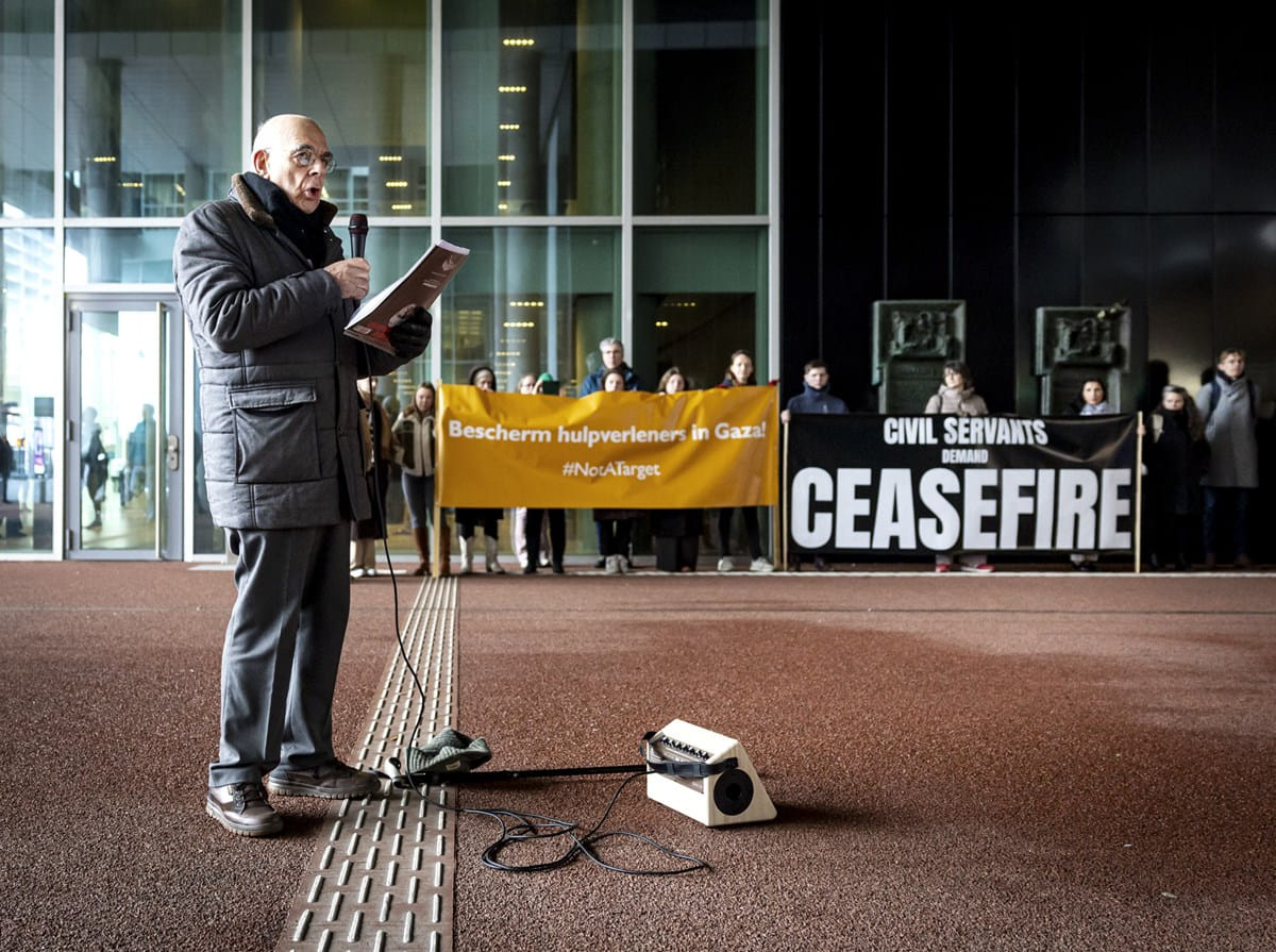 Iedere donderdag zien ze links van de ingang een groep collega’s van verschillende ministeries staan, in actieve dienst en soms al afgezwaaid, die met spandoeken hun ongenoegen uiten over het Israël-beleid van de zittende regering en het stilzwijgen over het moorden in Gaza en op de Westelijke Jordaanoever.