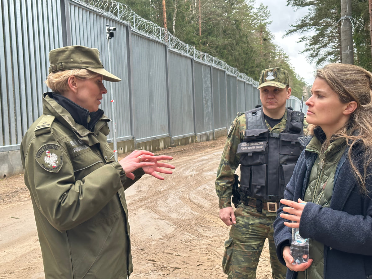 Aan de andere kant van de grens wordt een groeiende stroom vluchtelingen uit het Midden-Oosten, Afghanistan en Afrika door Russische en Belarussische autoriteiten aangemoedigd om de Poolse grens over te steken. Wie de grenspolitie weet te ontwijken, vlucht verder het land in, door ontoegankelijke bossen en moerassen, vaak hevig gewond door het vlijmscherpe prikkeldraad of een val van het metershoge hek.