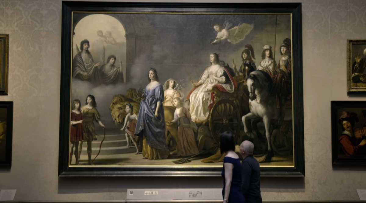 Een sprekend voorbeeld van de exorbitante levensstijl én de politieke bedoelingen die Elizabeth Stuart had, is het schilderij Overwinning van de Winterkoningin van Gerard van Honthorst. Akkerman: 'Dat is een heel politiek schilderij. Ik heb daar veel uit kunnen halen, omdat ik de context zo goed ken uit de brieven die ik bestudeerd heb.' Kortom, je gaat het pas zien als je het doorhebt.