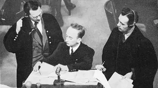'Nou ja, je moet individuele schuld bewijzen. Dat is niet zo makkelijk. Je hebt getuigen nodig, en bewijsmateriaal enzo. Anders krijg je net zulke processen als in Dachau. Dus hoe dan ook, hij zond me naar Berlijn, om daar een bureau op te zetten, en dat was de plek waar alle Duitse officiële archieven waren. Ik zette daar een bureau op met ongeveer 50 mensen, en we begonnen door de archieven te gaan, of beter gezegd, wat ervan over was in die platgebombardeerde stad. En ik stuitte op de verslagen van de Einsatzgruppen. Ik telde de getallen op, met een kleine rekenmachine: meer dan een miljoen mensen vermoord.'