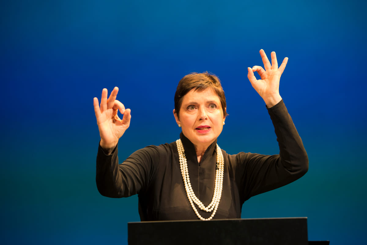 De filmmaker Isabella Rossellini werd geboren in 2006 met het aandoenlijke portret dat ze maakte van haar vader, waarin ze hem speelde met pak, plaksnor en al. De film werd opgepikt door het Sundance Festival en vertoond op hun eigen televisiezender, Sundance Channel. ‘Ze vroegen me om nog een korte film te maken.’ Haar oude passie voor de biologie kwam bovendrijven, en van het een kwam het ander. In totaal maakte ze vier series van ieder tien korte films. En er komt nog meer: ‘De volgende tien moet ik nu gaan schrijven, maar dat lukt niet erg op tournee,’ zegt ze met een licht vermoeide glimlach.