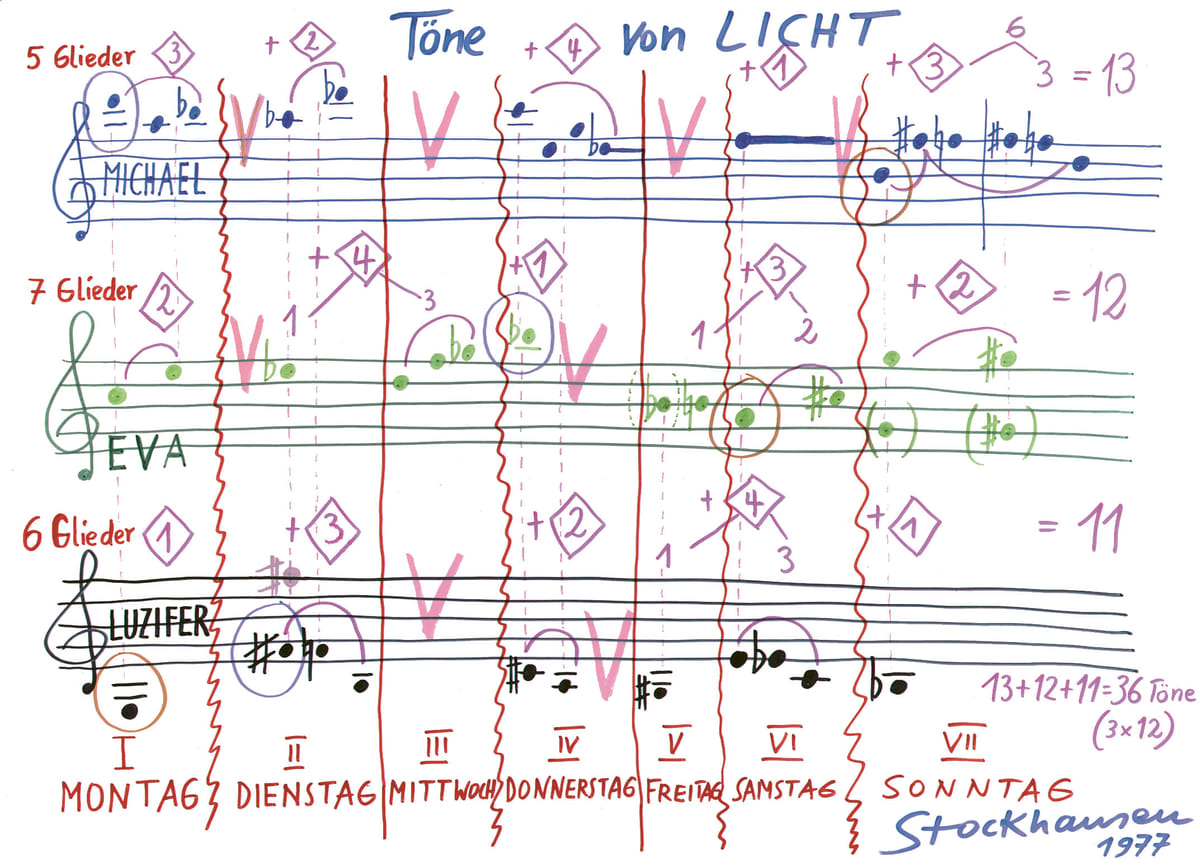 Het zou perfecte grondstof kunnen zijn voor een streekroman, maar een boerendochter uit, zeg, Blecher-Odenthal zit er niet in, ook al heeft Karlheinz daar na de oorlog de kost verdiend als knecht. Zijn Lichtkoerst naar het hogere: Michael neemt een drievoudige gedaante aan als trompettist, danser en tenorzanger, maakt zich op voor een Reise um die Erde– door Stockhausen betoverend fraai getoonzet – en bindt na terugkeer de strijd aan met het Kwaad. Uiteindelijk is ook zijn boodschap overzichtelijk.