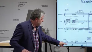 Jochem Valkenburg, programma-manager van het Holland Festival en Renee Jonker, docent aan het Koninklijk Conservatorium Den Haag, geven een inleiding bij aus LICHT deel 1.