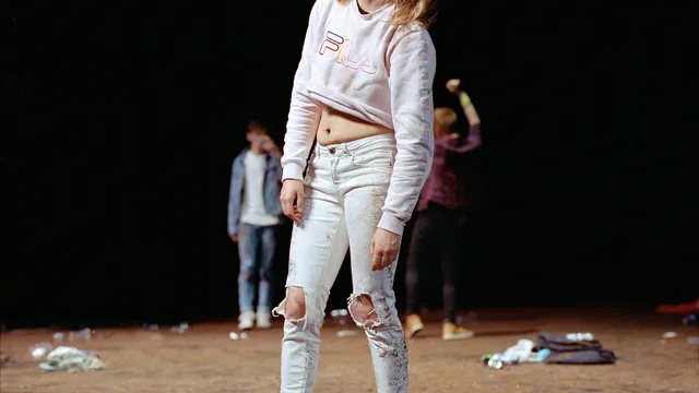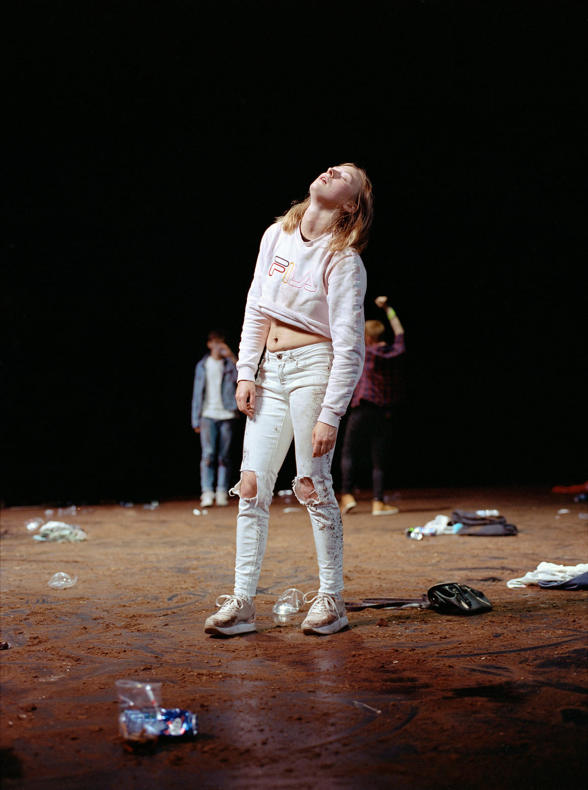 ‘De houseparty heeft veel elementen van een heidens ritueel. Het aardse, primitieve van zo’n groepsdans bijvoorbeeld, en het gestamp op de grond,’ zegt Gisèle Vienne. We spreken de choreografe eind februari in Grenoble, naast Parijs haar vaste thuisbasis, daags na de première van Crowd. De vraag was: waarom een houseparty? Wat is er zo interessant aan? Housen is toch gewoon vermaak? ‘Ik geloof niet dat de houseparty een oppervlakkige ervaring is. Iedereen heeft diepgang, en iedereen zoekt ook diepgang in de ervaringen die hij of zij opdoet. De generatie van eind jaren negentig zocht zoals elke generatie naar nieuwe ervaringen, met eigen codes, eigen kleding en een eigen manier van dansen. Ik heb zelf in Berlijn gewoond toen ik zeventien, achttien was in de tijd van de techno. Het was een scene waarin je je onderdompelde, op zoek naar iets gemeenschappelijks.’