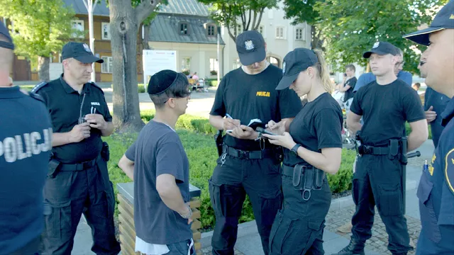 We gingen met hem naar het stadje Węgrów, waar hij op de muur wilde schilderen: ‘”Jood, ik mis je”. Samen met de huidige bewoners, en met een joodse vriend van hem. Om zo de discussie over dat verleden te openen, en als gebaar van verzoening. De actie was aangekondigd op facebook. Er waren best veel mensen op af gekomen, en ook heel veel politie. Ook waren er een paar mannen met een grote bek. Die reageerden heel agressief, zo van: opdonderen, kunstenaar, we gaan je niet helpen, je bent ons alleen maar aan het uitdagen. Intimiderend. De spanning liep op, en niemand stond op om de kunstenaar te helpen. Er kwam wel een vrouw naar ons toe, die zei dat ze zich doodschaamde. “Ik zou wel mee willen doen, maar ik durf het niet,” zei ze.