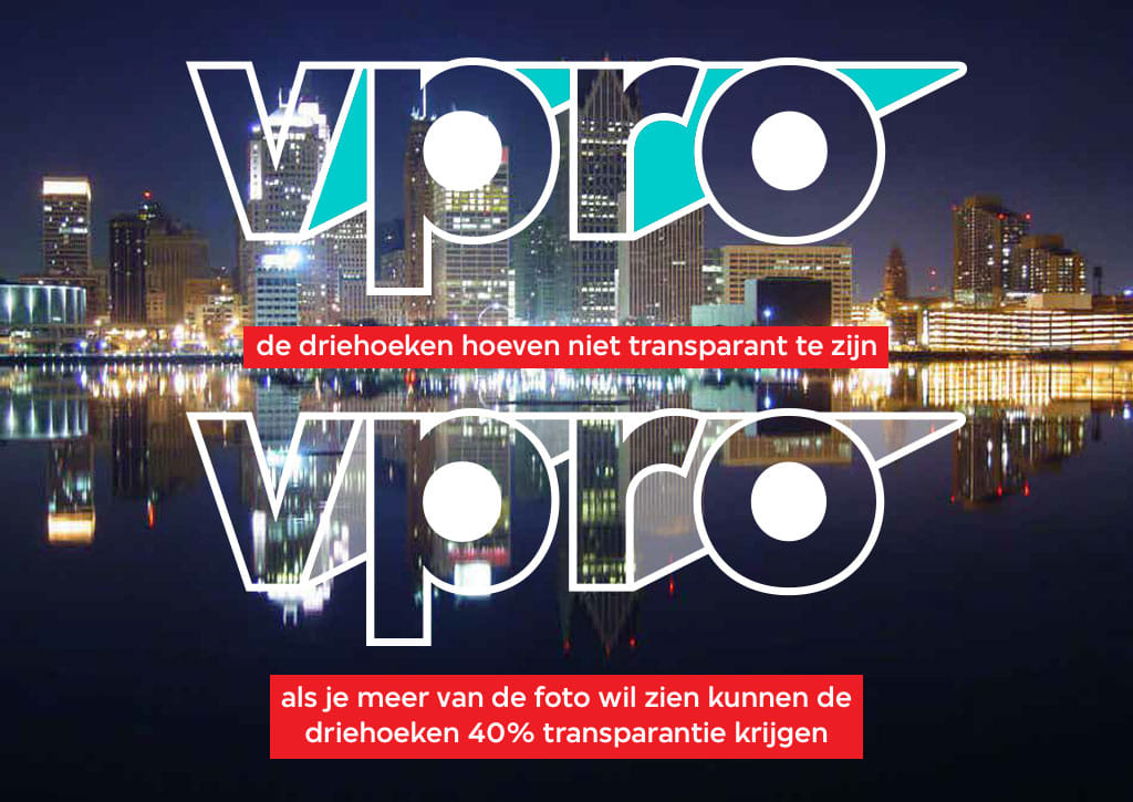 • Rechts: basislogo diapositief, de driehoeken hebben een 40% transparant witte invulling