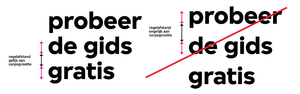 •  Regelafstand gelijk aan corpsgrootte (bv. allebei 80 pts)