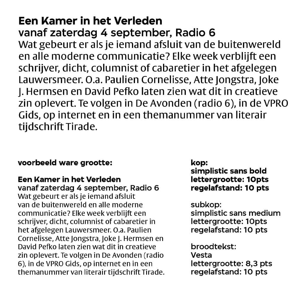• Broodtekst in VPRO Vesta, 83% van de corpsgrootte van de kopjes