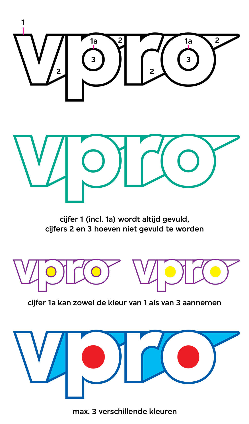 De basis van de huisstijl wordt gevormd door het VPRO-logo, en VPRO-typografie. De maier waarop we die elementen toepassen wordt hieronder beschreven, net als het VPRO-kleurenpalet, vormentaal, do’s en don’ts.