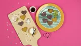 Koekjes klaar, versieren maar! Voor je cavia kan je het koekje versieren met stukjes aardbei. Voor jezelf kan je chocolade smelten, au-bain-marie. Doe hiervoor brokjes chocola in een kom boven een pan met heet water. Roer de chocola totdat het gesmolten is. Je kan ook slagroom opkloppen met wat poedersuiker of zelfs de pitjes van een vanillestokje, als je jezelf echt wil verwennen.