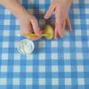 Smeer je handen in met een toefje crisco. Dit zorgt er voor dat je visje mooi zal glanzen. Pak een stuk gele fondant en rol met je handen totdat de fondant een kegelvorm heeft. Duw met je vinger om één kant van de ‘kegel’ iets platter te maken. Maak kleine inkepingen voor de oogjes en het mondje.