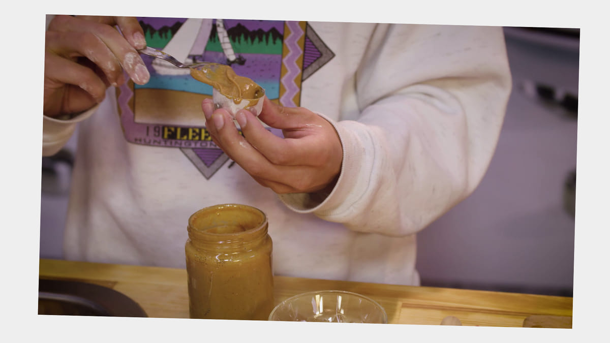 De waxinelichtvormpjes kun je ook gebruiken om de ingrediënten mee af te meten. Pak een nieuwe schaal en doe hier acht maal een waxinelichtvormpje-hoeveelheid bloem in. Doe hier ook vier keer een waxinelichtvormpje water en een waxinelichtvormpje pindakaas (zonder stukjes) bij. Kneed tot een deeg. Rol het deeg uit tot het ongeveer 2mm dik is. Bekleed de waxinelichtvormpjes met het deeg.