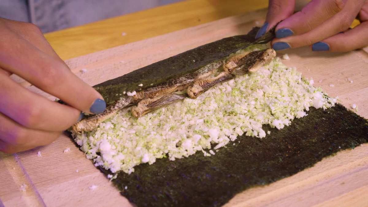 Maak ook een rol met broccoli en krekels en een rol met bloemkool, broccoli en sprinkhanen. Snij de rol in plakjes met een scherp mes, met een zagende beweging. Geef de sushiplakjes naturel aan je beessie en eet zelf met de sojasaus en zelfgemaakte Japanse mayo. Itadakimasu (eet smakelijk)!