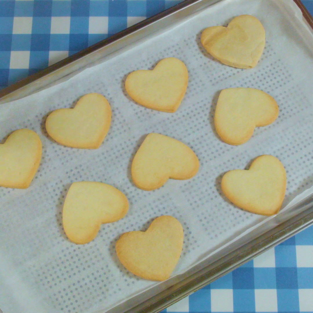 Mix en kneed de poedersuiker, boter, het bloem, het ei en een snufje zout door elkaar totdat je een mooi deegje hebt gemaakt. Bestrooi je werkblad met bloem en rol het deeg uit tot het mooi dun is. Gebruik een uitsteekvormpje om hartjes uit het deeg te halen. Leg de hartjes op een bakplaat. Doe de hartjes voor 10 á 15 minuten in de oven, op 170° graden. Laat de koekjes daarna afkoelen. Nu is het tijd om de icing te maken!