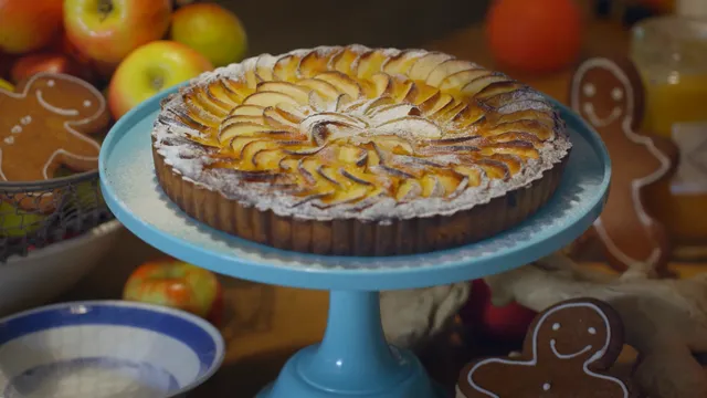 Beleg de bovenkant van de taart met de appelschijfjes in concentrische cirkels.