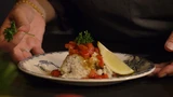 Maak de Relish. Verwarm de azijn heel kort, giet in een kom en laat de saffraan erin weken. Klop er dan in een dunne straal de olijfolie door tot het net gaat binden. Maak het sausje verder af met tijm, roze peper en citroensap. Verwijder de zaadlijsten uit de tomaat en snij het vruchtvlees in kleine blokjes. Roer die door de saffraandressing. Breng met wat zout op smaak. Zet opzij.